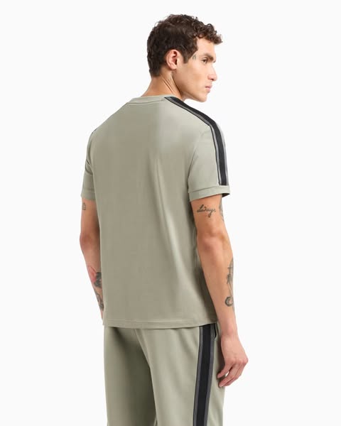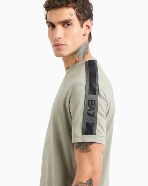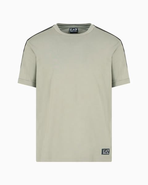 T-shirt realizzata in jersey di cotone, perfetta per outfit versatili, che spaziano dalla palestra al tempo libero. Il modello, dalla vestibilità regular, è personalizzato dal dettaglio del piping a contrasto sulle spalle. Il logo EA7 è il vero protagonista della proposta Logo Series