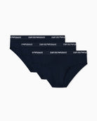 Pack composto da 3 slip in jersey stretch di cotone. Vita elastica con logo Emporio Armani. Il capo appartiene alla selezione di capi Essentials, la capsule di Emporio Armani studiata per un guardaroba adatto in qualsiasi stagione dell'anno. I cosidetti capi "essenziali" e versatili che non devono mancare nell'armadio maschile.