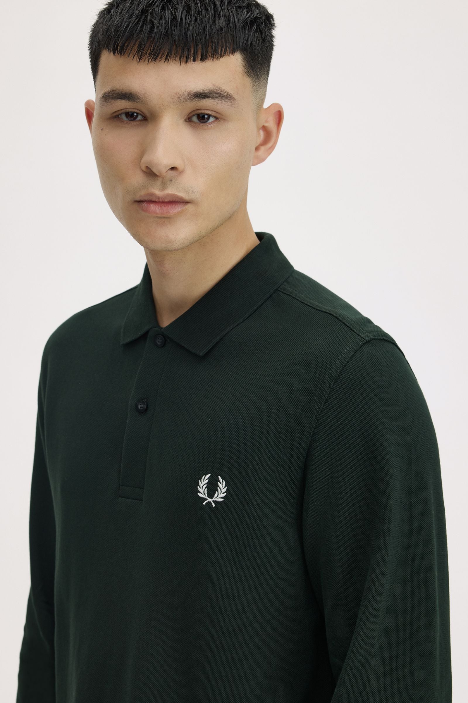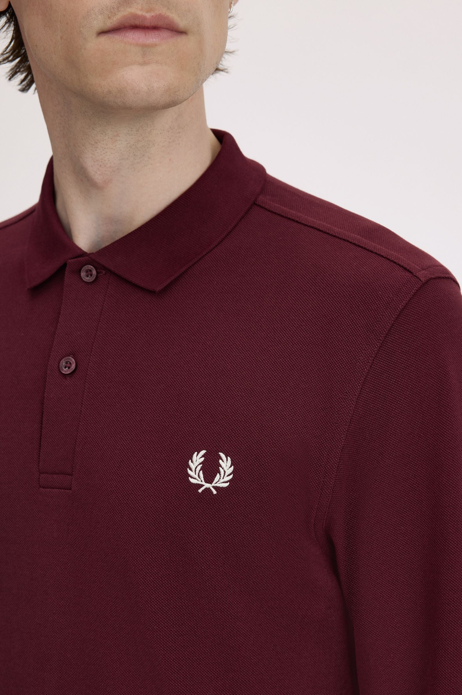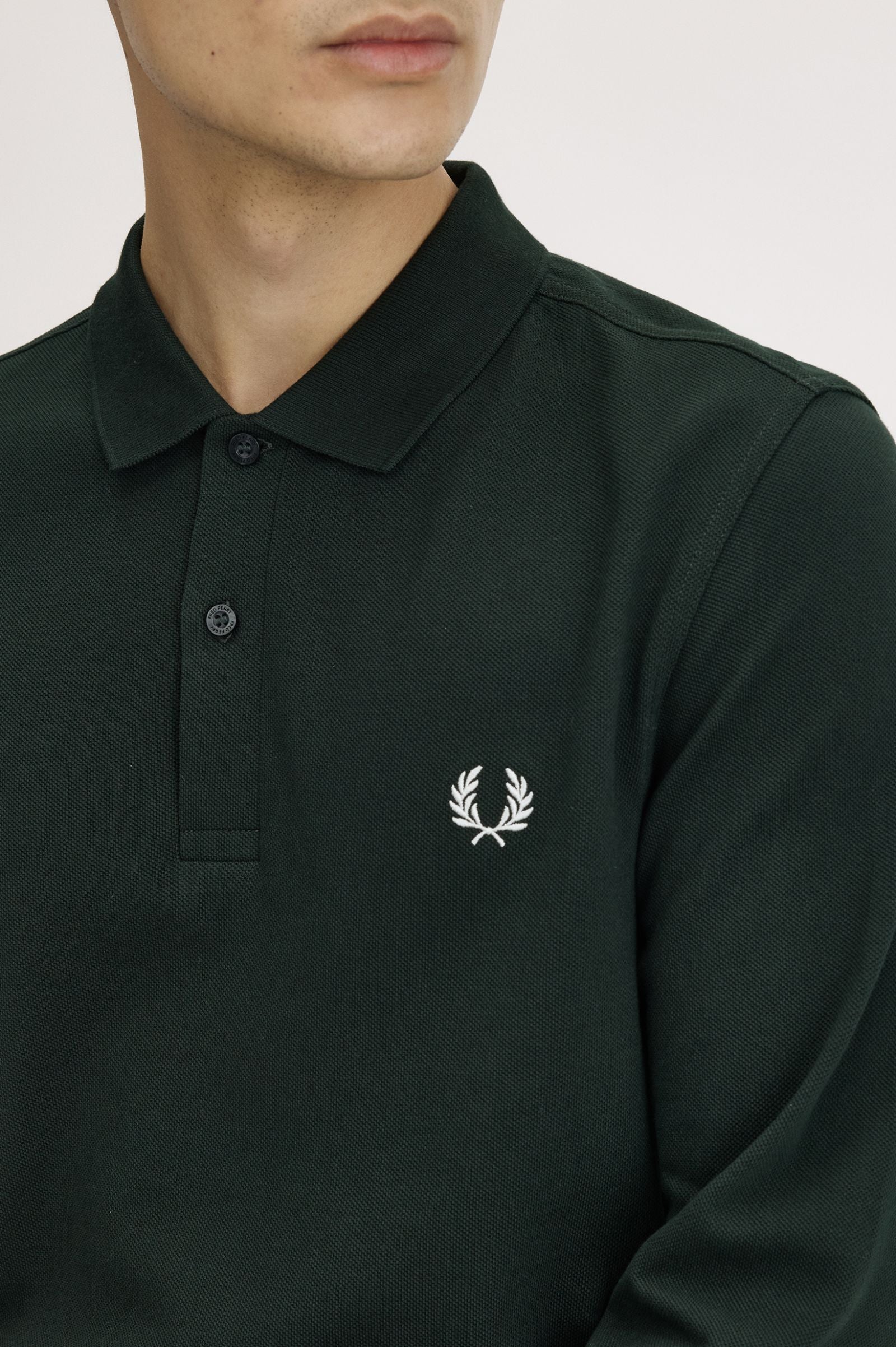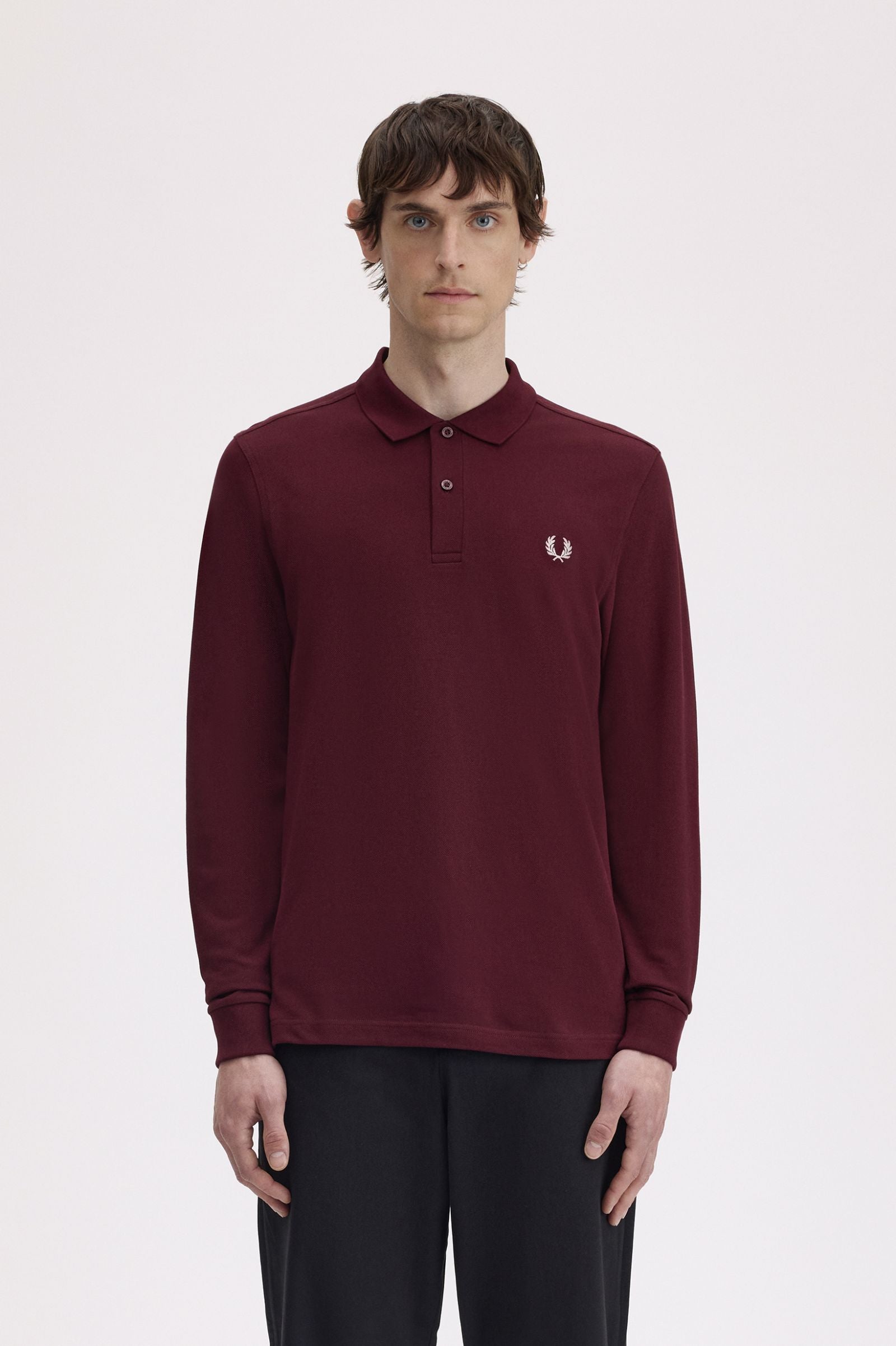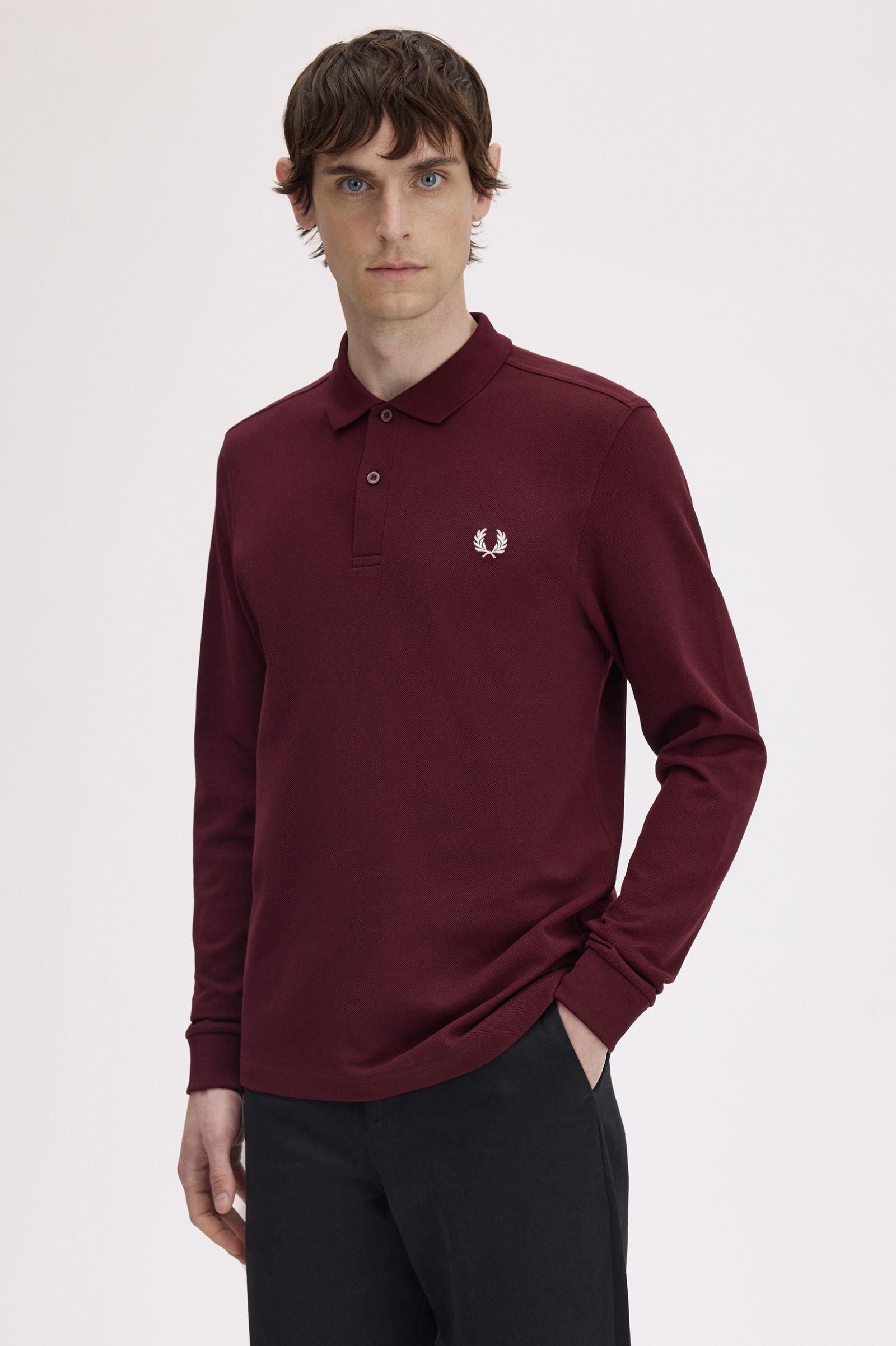 Polo da tennis Fred Perry, a maniche lunghe. Realizzata con il tipico piqué di cotone